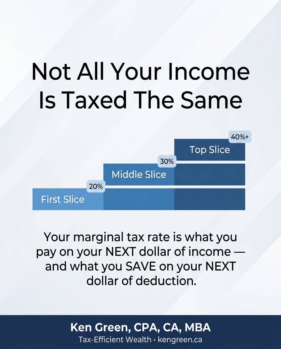 We’re now less than two weeks to the personal tax return filing deadline. While many have already filed, I know most will be filing in the coming two weeks. One of the topics I discussed in my book, Tax-Efficient Wealth is the importance of knowing your marginal tax rate. I get excited and my clients also do, when we see this in action as we prepare and file personal tax returns. It is real and it is extra dollars in your hands when you understand how this works. I share more about this in this issue as well as other key tax and financial planning tips to help you navigate both simple and complex tax situations. Enjoy - and please share this with your network: 1. Know Your Marginal Tax Rate (Or Pay More Tax Than You Should) Most Canadians know they “pay tax,” but very few know their marginal tax rate - the rate they pay on their next dollar of income. Your marginal tax rate is a reflection of how powerful your RRSP contributions are, how valuable a deduction will be, and how much extra tax you’ll pay on a bonus, side income, or a big investment sale. In my latest article, I break down marginal tax rates in simple, practical terms: what they are, how they actually work in Canada, why your average tax rate is not the same thing, and how to use your own marginal rate to make smarter decisions about RRSP vs. TFSA, timing income, and structuring your salary, dividends, and investment income. If you’re earning a decent income and want to keep more of what you make this year (and every year after), this is a must‑read. 👉 Read the full article here:https://kengreen.ca/marginaltax/ 👉 And if you want the full blueprint, you can order my book Tax-Efficient Wealth here: https://kengreen.ca/book/ 2. Registration is Now Open for the 2026 Tax-Efficient Wealth Summit We are excited to announce that EARLY BIRD registration is now open for this year’s Tax-Efficient Wealth Summit taking place on Saturday, June 20th in Mississauga. This year, we also have a LIVE online stream option if you want to join us virtually. If you’re considering ways to minimize your taxes and build wealth in a tax-efficient manner, then you should make plans to join me and my guest speakers at this year’s Tax-Efficient Wealth Summit where we will focus on the 3 key tax-efficient asset classes used by the wealthy to build and accelerate wealth. For those attending in-person, you will have the opportunity to connect with others just like you and potentially build new relationships. For all attendees, it’s a great learning environment with the great speakers we have lined up this year You can get all the event details and register here. 3. Ten Mistakes to Avoid as You File Your Personal Tax Returns Most Canadians rely on DIY tax software and assume that’s enough—but the real cost is in the mistakes you don’t see. In my latest article, I walk through 10 common (and expensive) errors I see every year: from over‑claiming self‑employment expenses and ignoring carryforwards, to missing powerful credits and mishandling CRA reviews. I also show you the key numbers you should pull from your return—your actual tax paid, average and marginal rates—and how to use them to pay less tax next year, not just “get a refund” this year. If you’re serious about keeping more of what you earn in 2026 and beyond, this is a must‑read. 👉 Read the full article here: https://kengreen.ca/10mistakes/ 4. Why More Money Will Not Solve Your Money Problems Not too long ago, in an email shared by Rob Minton, one of my mentors, he concluded that… Money problems ALWAYS flow from thinking problems. I thought this was an interesting conclusion as it directly relates to our money mindset. Rob goes on to share how we see this in real life by studying lottery winners. Within a short period of time, they go from money problems to having lots of money and then to having money problems again. So, more money usually doesn’t solve money problems. To solve money problems you have to change how you think about money. This comes down to your money mindset, which is the subconscious feelings and thoughts we develop towards money from our life experiences. A money mindset is your unique and individual set of core beliefs about money and how money works in the world. It is your overriding attitude about money. It shapes what you believe you can and cannot do with money, how much money you believe you’re allowed, entitled, and able to earn, how much you can and should spend, the way you utilize debt, how much money you give away, and your ability to invest with confidence and success. When it comes to money mindset, there are two extremes: